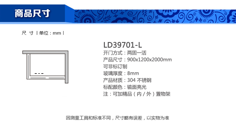 淋浴房LD39701-L900x1200x2000mm